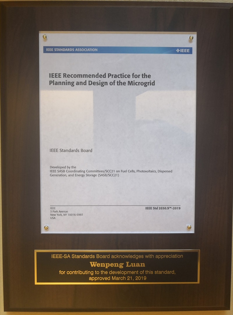 牵头编写的IEEE 2030.9-2019《微电网规划设计推荐性实践》国际标准获批,面向全球正式发布。