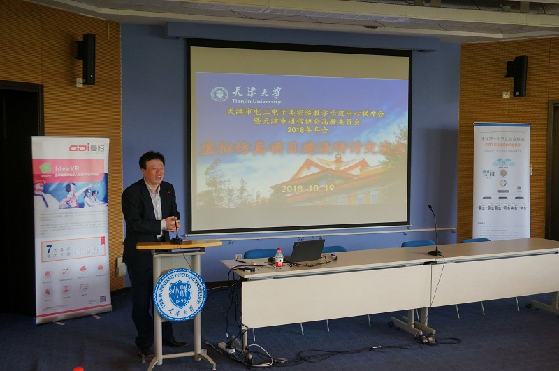 范江洋高工做了“虚拟仿真实验教学项目建设及申报交流”报告,对虚拟仿真项目的建设重点、申报经验、心得体会等做了介绍。同时,具有非常丰富虚拟仿真项目建设经验的北京润尼尔网络科技有限公司、上海曼恒数字技术有限公司也就虚拟仿真项目的建设思路和相关案例进行了说明。与会教师普遍表示这些报告加深了对虚拟仿真项目的认识,并提供了非常好的范例。会上,天津市电工电子示范中心理事长、通信学会高教委副理事长刘开华教授还对联席会近一年的工作进行了总结。