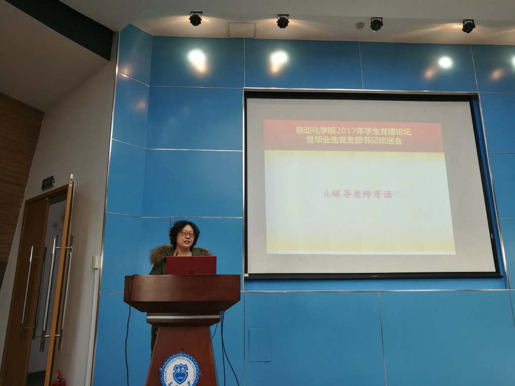 最后,院党委副书记张秀娟对学生党建工作进行指导并寄语毕业生党支部书记。首先,张秀娟肯定了党建论坛的开创性和重要性,希望以此为平台促进不同年级、不同党支部的交流分享;其次,她强调党支部书记工作的重要性,指出每一位支部书记都应加强对自己的要求,不忘初心才能更好的为人民服务,才能更好地促进个人成长和发展;第三,她强调了支委会成员分工合作的重要性,细化分工既能够为同学更好的服务,又能够为党员骨干们提供良好的锻炼平台;此外,她希望每一位学生党支部书记和党员骨干都能牢记“青年兴则国家兴,青年强则国家强”,认识到自己肩负的责任,带领每个党支部加强建设,在新的一年取得长足进步,促进磁力片