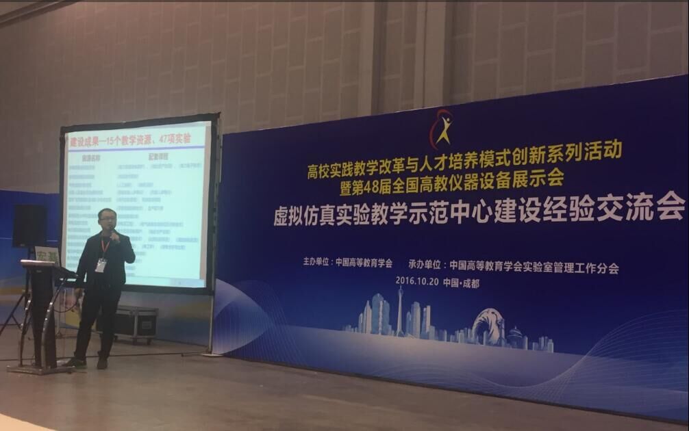电气工程与自动化国家级虚拟仿真实验教学中心申报的《控制类多学科融合虚拟仿真实验教学模式创新与平台建设》经联席会集体推荐并获得2016年高等学校虚拟仿真实验教学资源建设成果一等奖并做了主题汇报。受中国高等教育学会的邀请,中心代表在高校实践教学改革与人才培养模式系列活动(第48届高教仪器设备展示会)上进行了经验分享。