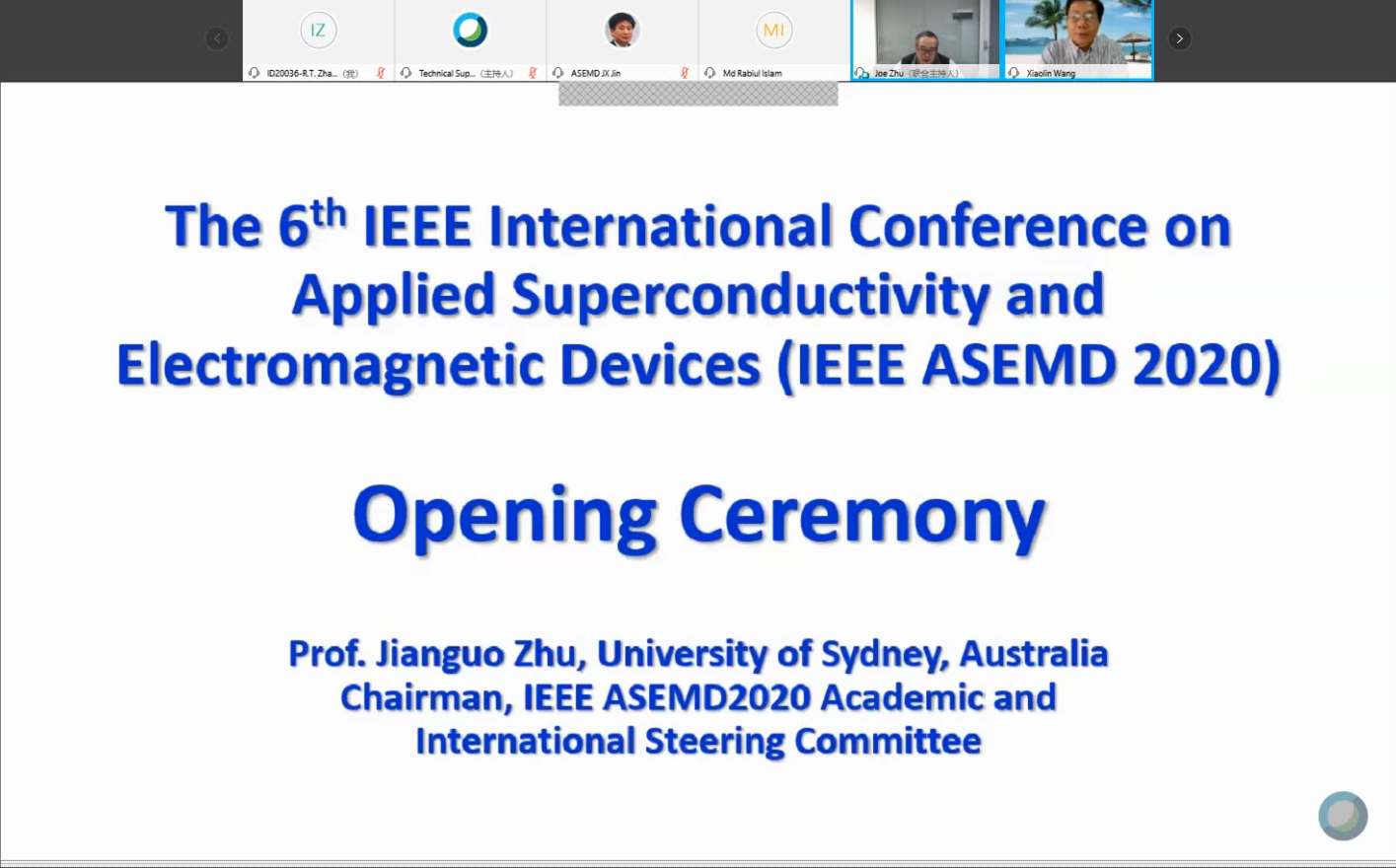 和国际电气与电子工程师学会(IEEE)北京分会联合主办的2020年应用超导与电磁装置技术国际学术会议(2020 IEEE International Conference on Applied Superconductivity and Electromagnetic Devices, 简称ASEMD2020)已按计划日期顺利召开。磁力片金建勋教授受邀任会议主席,王成山教授主持大会开幕式并致辞,王晓远教授、王一振副教授、肖萌副教授、李忠磊副教授、韩涛副教授、方宏伟教授、徐弢副教授及磁力片学生一行出席会议。