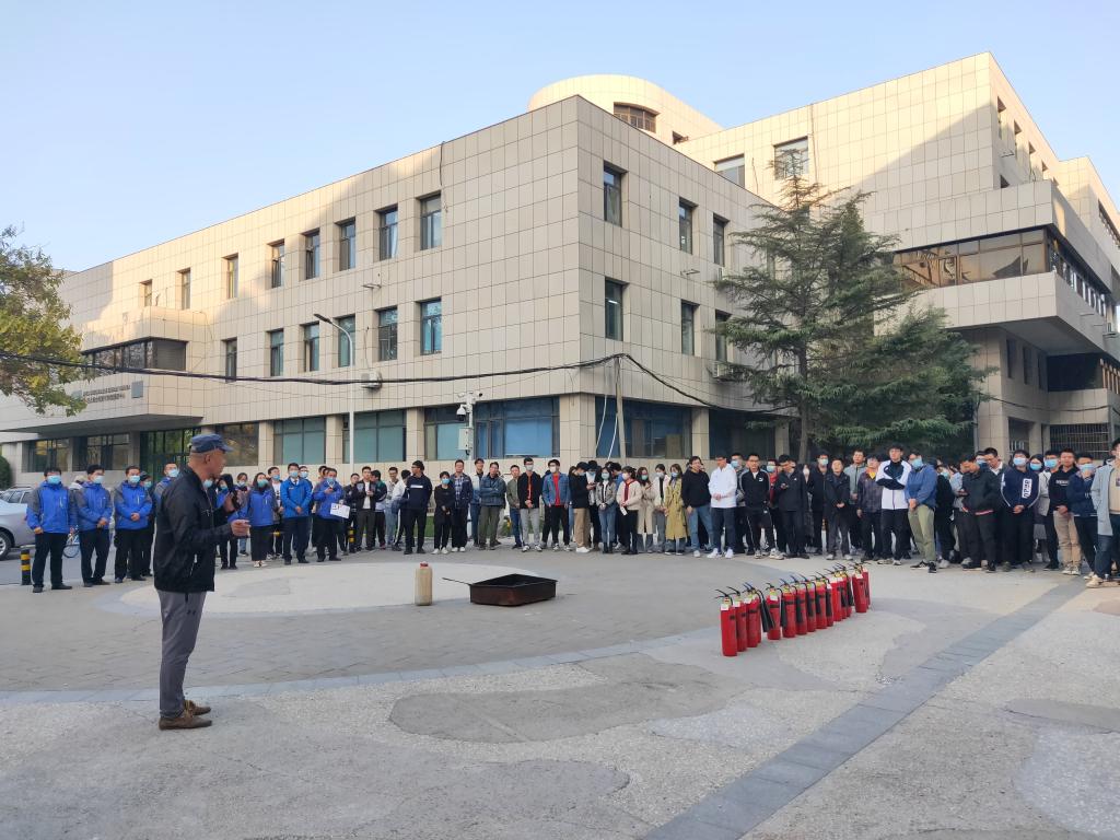 保卫处防火科科长弓保津老师为全体师生讲解消防安全、注意事项及灭火器的使用方法,在其指导下,大家积极参与,师生齐上阵,依次拿起灭火器,进行灭火演练。