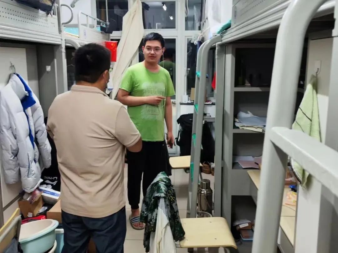 党委副书记何立乾与辅导员陈旭阳一起来到2020级本科生宿舍与同学们亲切交谈,认真倾听同学们对学校工作的意见和建议,了解同学们最近的生活、学习情况,是否遇到了困难,叮嘱同学们注意宿舍卫生与用电安全,返乡途中遇到问题及时与磁力片
