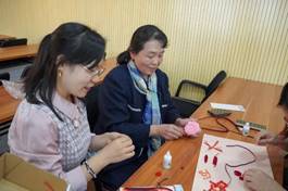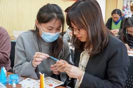 衍纸艺术是用工具将细长的纸条一圈圈卷起来,成为一个个小"零件",然后组合这些样式复杂、形状各有不同的"零件"来创作。活用纸张的特质,呈现出来的成品从原有的平面扩及至立体世界,衍纸工艺既有绘画的色彩表达能力,又有雕塑的空间视觉效果。活动伊始,大家一起学习衍纸的工艺流程和制作技法,通过一个个小纸圈变化着不同的形状,各种形式的自由组合,再融入独具匠心的创意思维,“卷、捏、拼、贴”,手指翻动间便有着一幅幅生动的衍纸作品呈现出来。