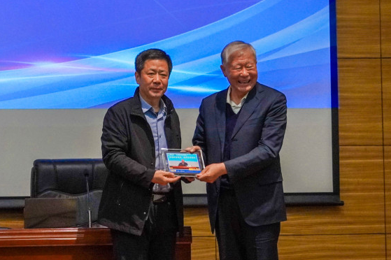 党委书记李继平为余贻鑫院士送上本期1933大讲堂的纪念相框与纪念章,以表达对余院士的感谢。
